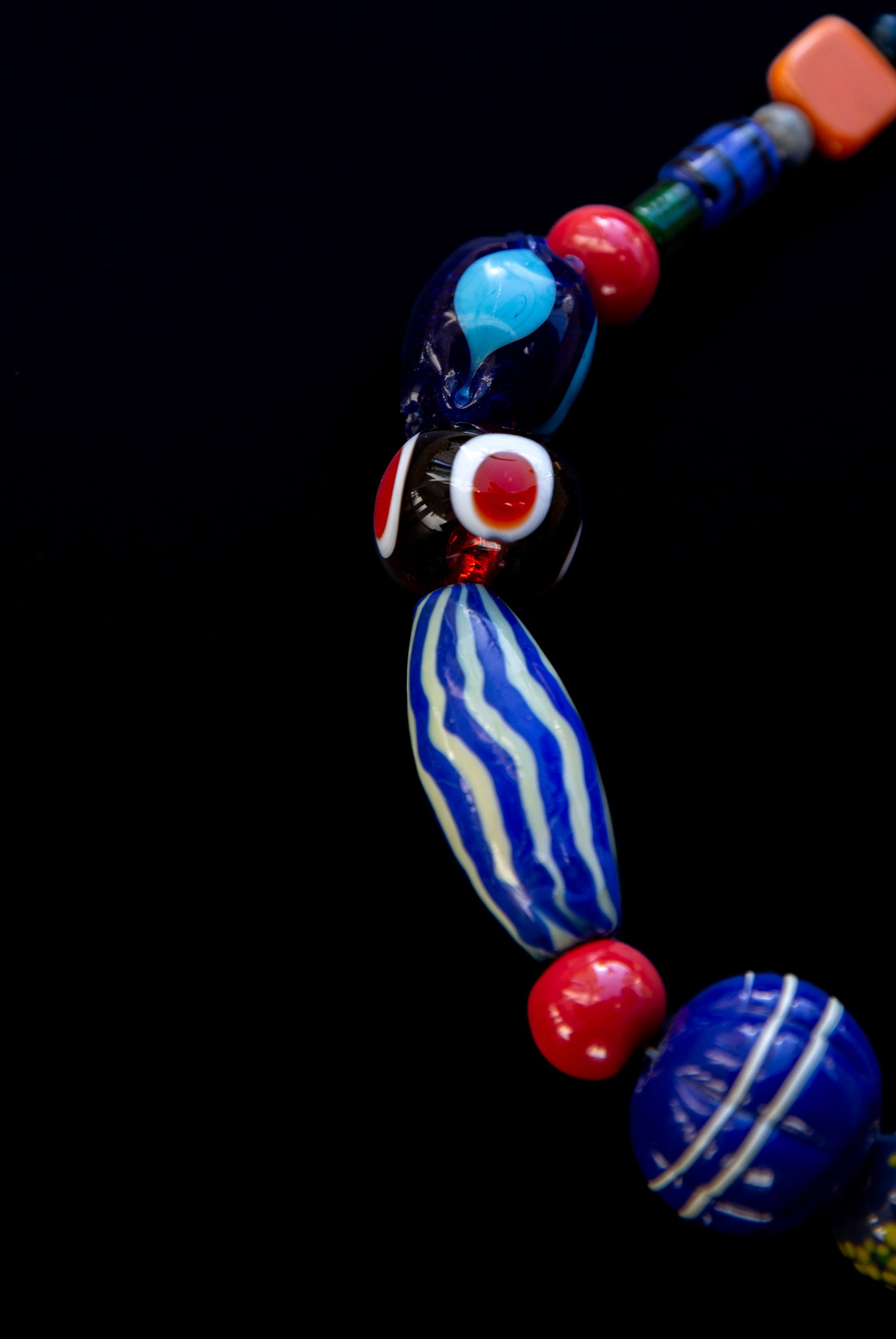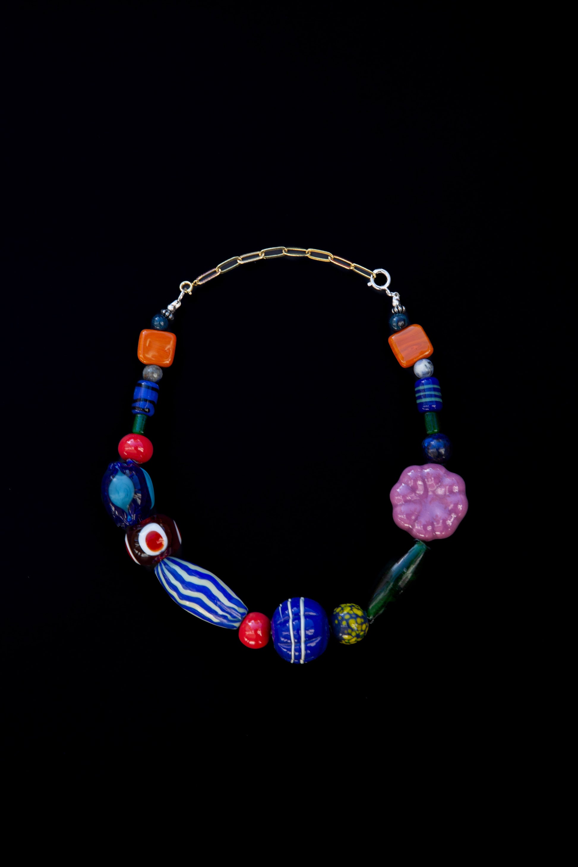 Gargantilha com mix de cerâmica, pedra natural, resina, vidro e semente de açaí. Fecho em prata de lei, acompanha extensor dourado com banho duplo de ouro 18k. Extensão total da peça: 46cm.